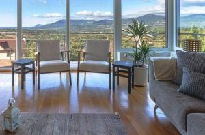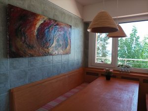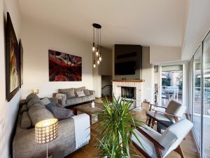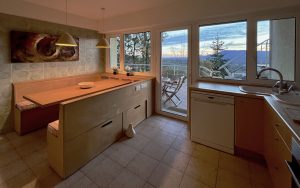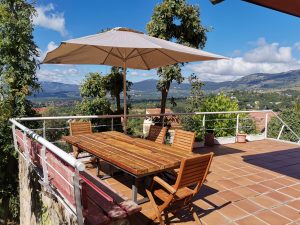 Puerta de salida a una terraza que está conectada con la terraza del nivel de la cocina. Sentarse en esta terraza y disfrutar de las vistas… ¡Esto rejuvenece unos cuantos años!