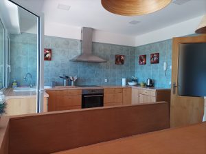 - Cocina con mesa rinconera, electrodomésticos, tostadora, hervidor de agua, cafetera y demás menaje de cocina para que se pueda cocinar como en casa.