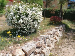 - Amplio jardín orientado al sur en el que se puede disfrutar de sus más de 700 metros con robles, jara, lavanda, romero, rosales y demás vegetación oriunda de la zona.