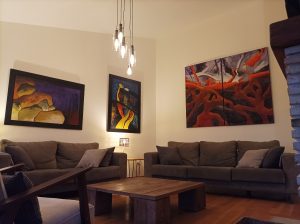 - Sala de Ocio/Dormitorio de 38 m² para los más jóvenes. Cuenta con una mesa de comedor, una mesa de ping pong, un rincón con dos sofás y una televisión de 52 pulgadas, un armario y dos camas abatibles horizontales de 90 cm. Tiene una ventana por donde recibe luz y ventilación desde la terraza de la planta superior.