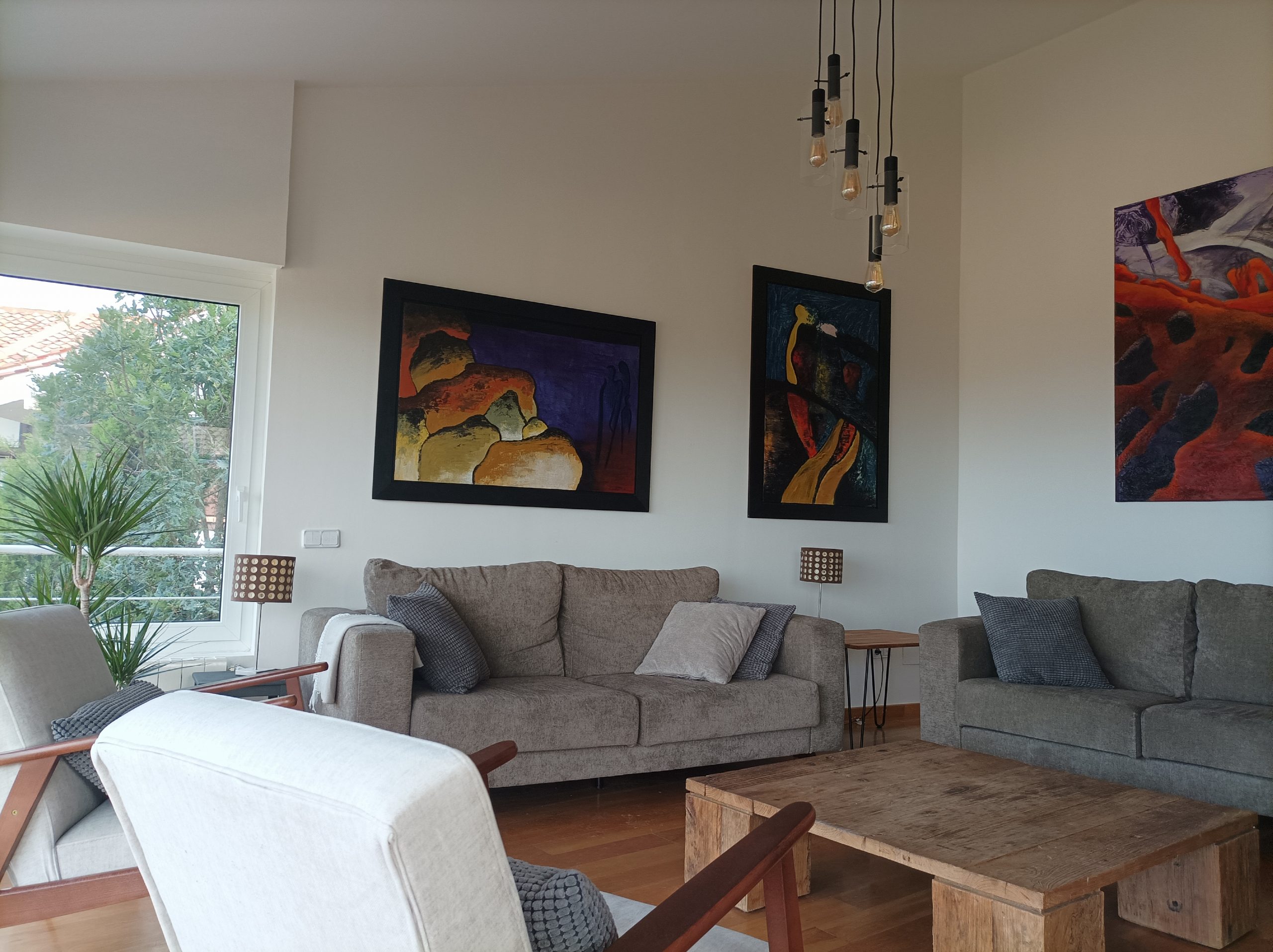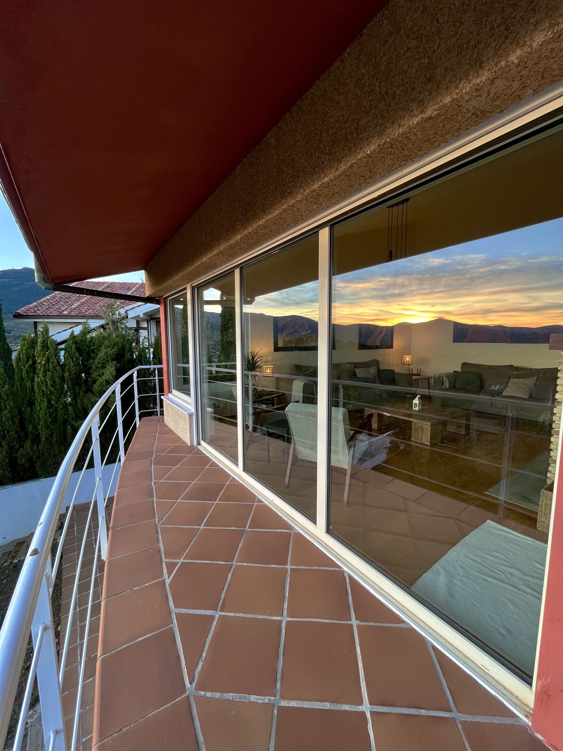 Puerta de salida a una terraza que está conectada con la terraza del nivel de la cocina. Sentarse en esta terraza y disfrutar de las vistas… ¡Esto rejuvenece unos cuantos años!