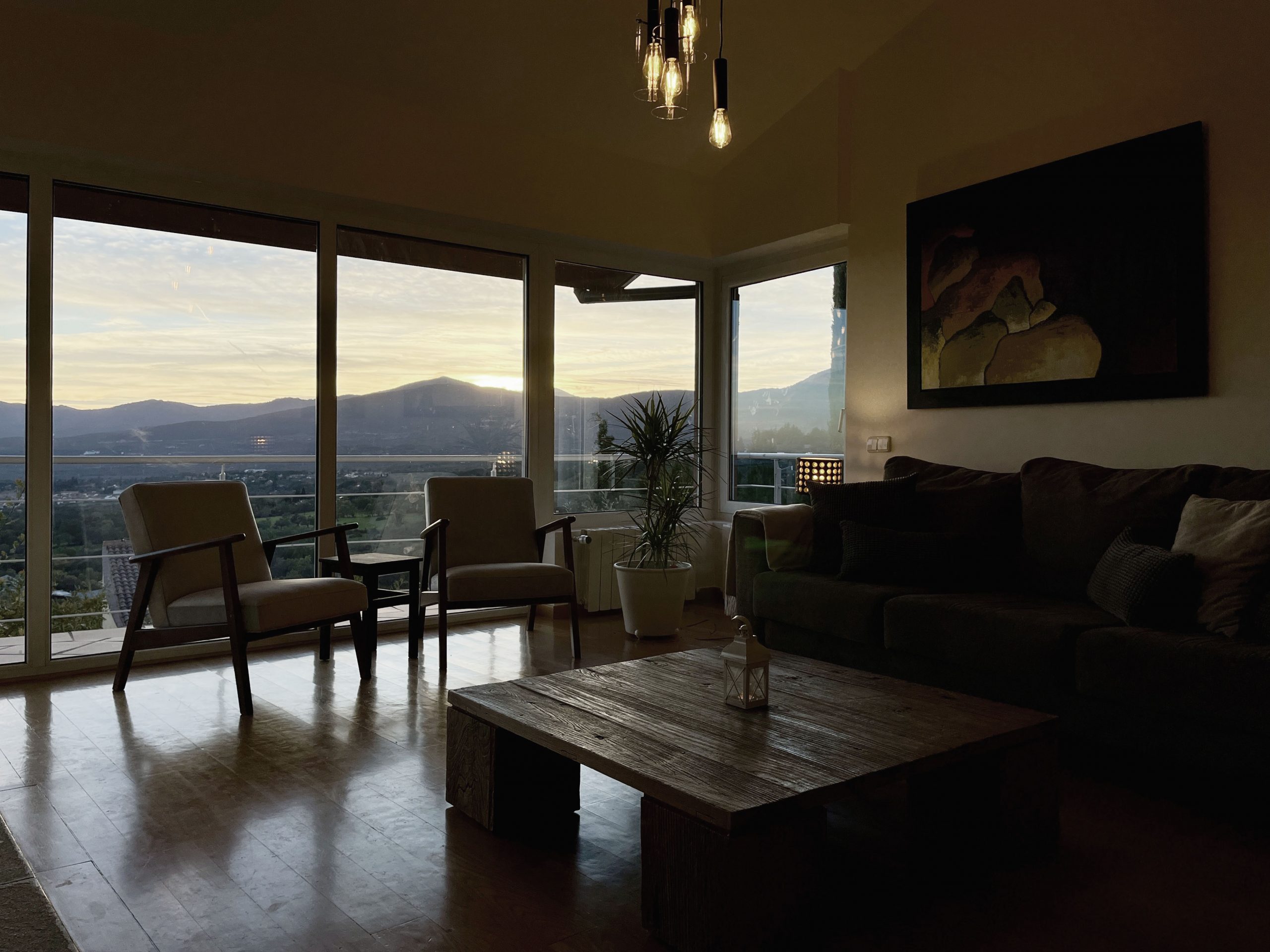 - Salón de doble altura con chimenea noruega e impresionantes vistas a todo el valle. Sofás de 2 y 3 plazas, mesa de centro, DVD y televisión de plasma de 52 pulgadas.